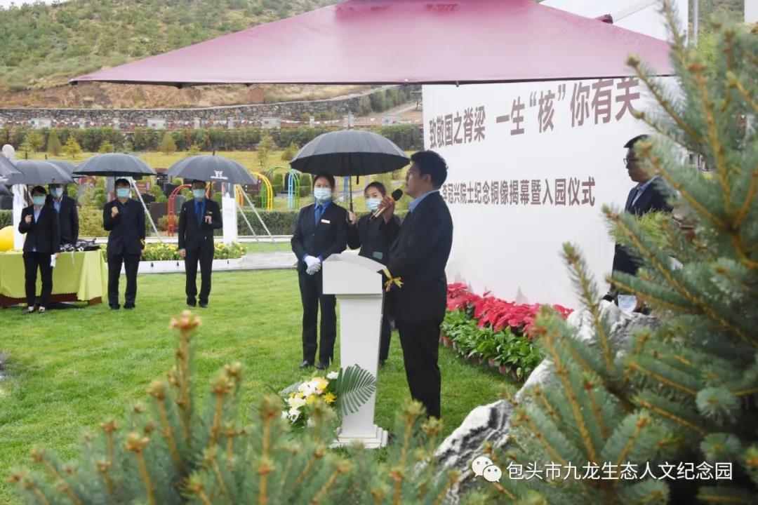 中核北方黨委書記、董事長鄒本慧講話。他代表中核北方向為李冠興院士紀(jì)念銅像落成給予大力支持的包頭市委、市政府、市委組織部以及九龍園表示衷心的感謝!向前來參加儀式的各位領(lǐng)導(dǎo)、各位親朋好友表示衷心的感謝!向李冠興院士家人致以誠摯的問候!